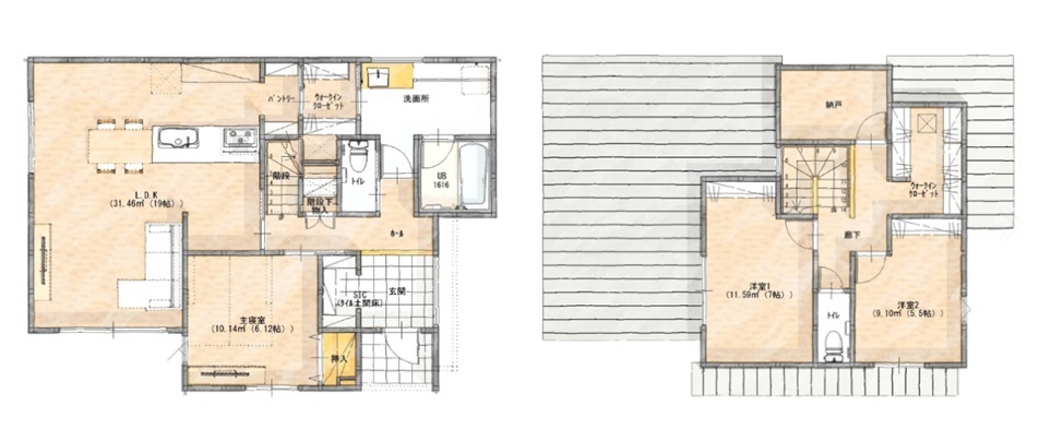 1階と2階それぞれにウォークインクローゼット。さらに2階には納戸を確保。