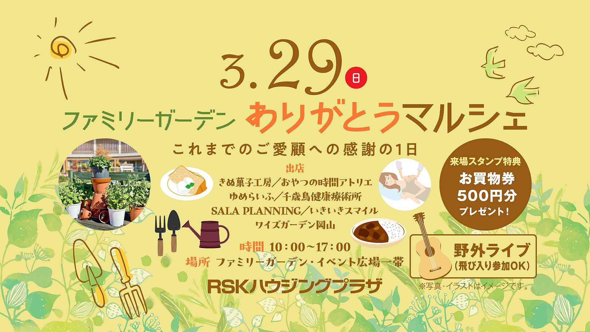 ファミリーガーデン一帯で「ありがとうマルシェ」を開催します。