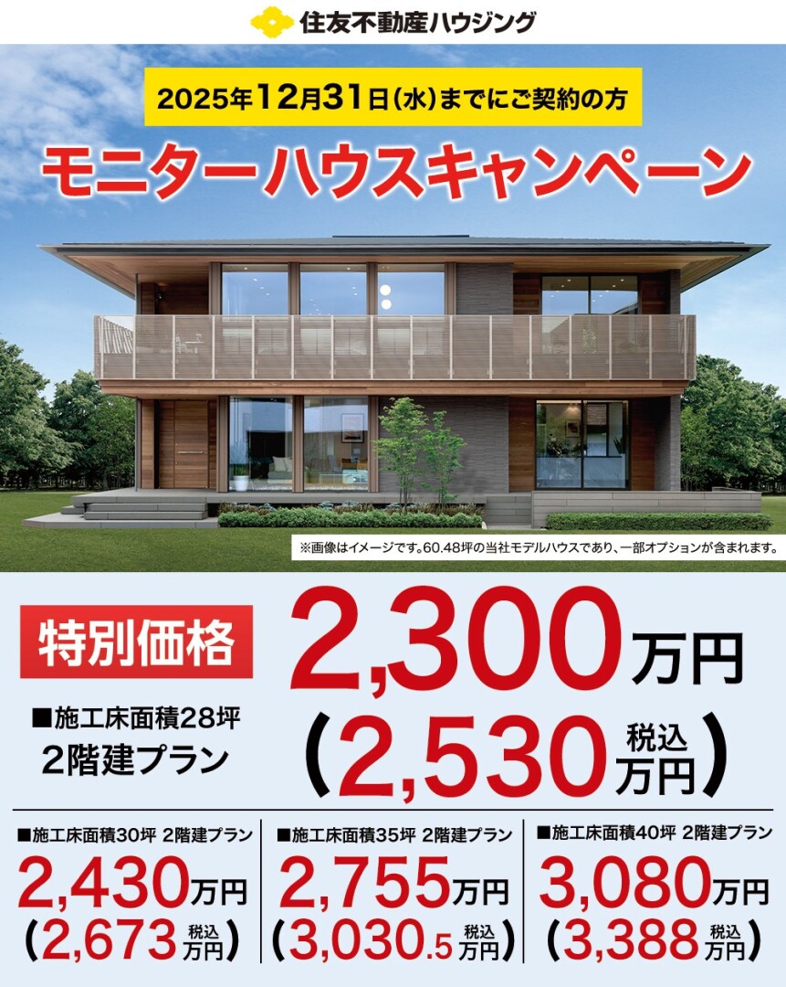 【住友不動産ハウジング】モニターハウスキャンペーン開催中!!