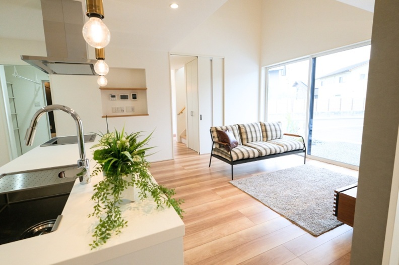 明るい光が差し込み、家族の気配を感じられる温かい空間です。