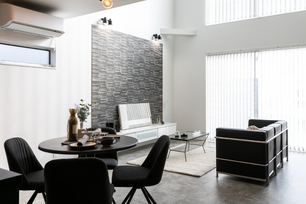 玄関ホールやリビングのテレビ背面には、調湿・脱臭効果のある「エコカラット」を採用し、間接照明で美しく演出しました。昼間は自然光で明るく、夜は落ち着いた証明でリラックスできる、ホテルライクな高級感あふれる内装デザインも必見です。