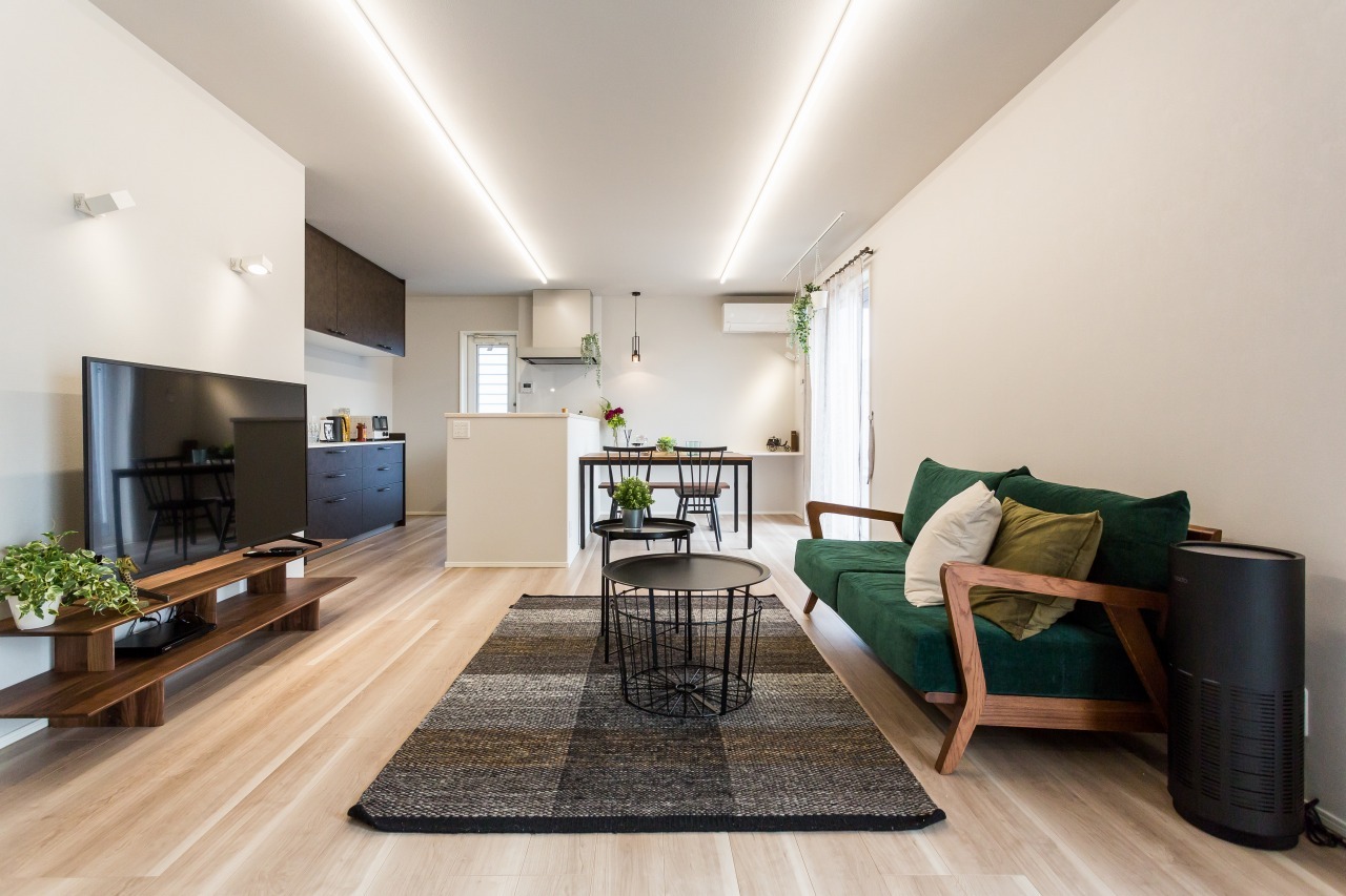 平屋だから叶う、家族が繋がる17帖の開放的なLDK。