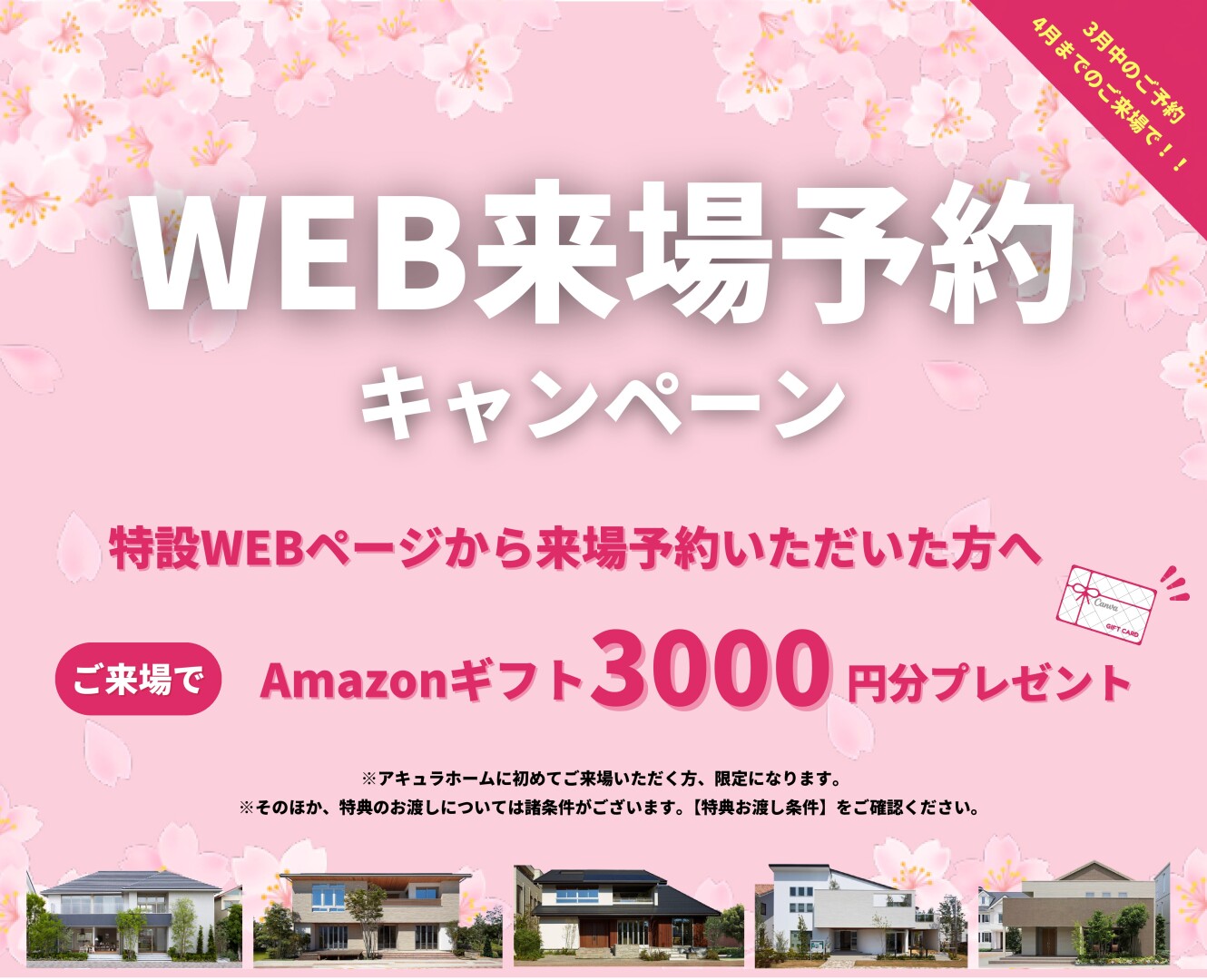 【来場特典】WEBから来場予約をいただくと、 アマゾンギフト3000円分プレゼント!|AQ Group アキュラホーム