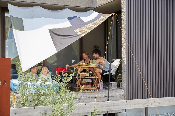 - リビングからつながる家族憧れのウッドデッキではBBQを楽しむことも